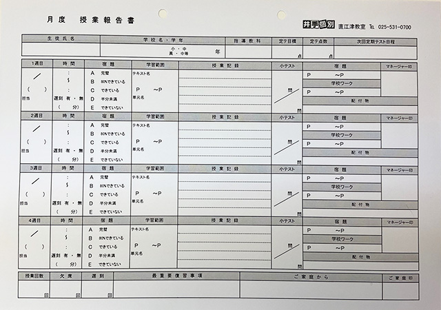 授業の内容&宿題 + お子さまの様子