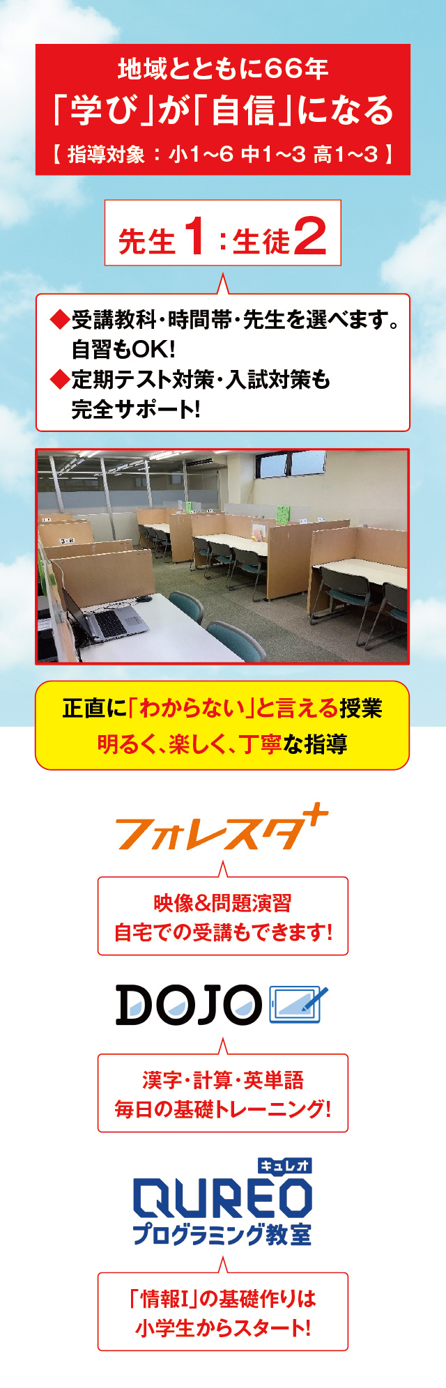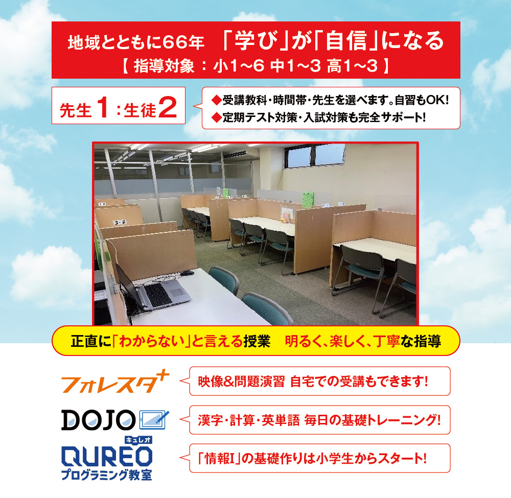 成績アップにこだわる、保護者も安心の学習サポート